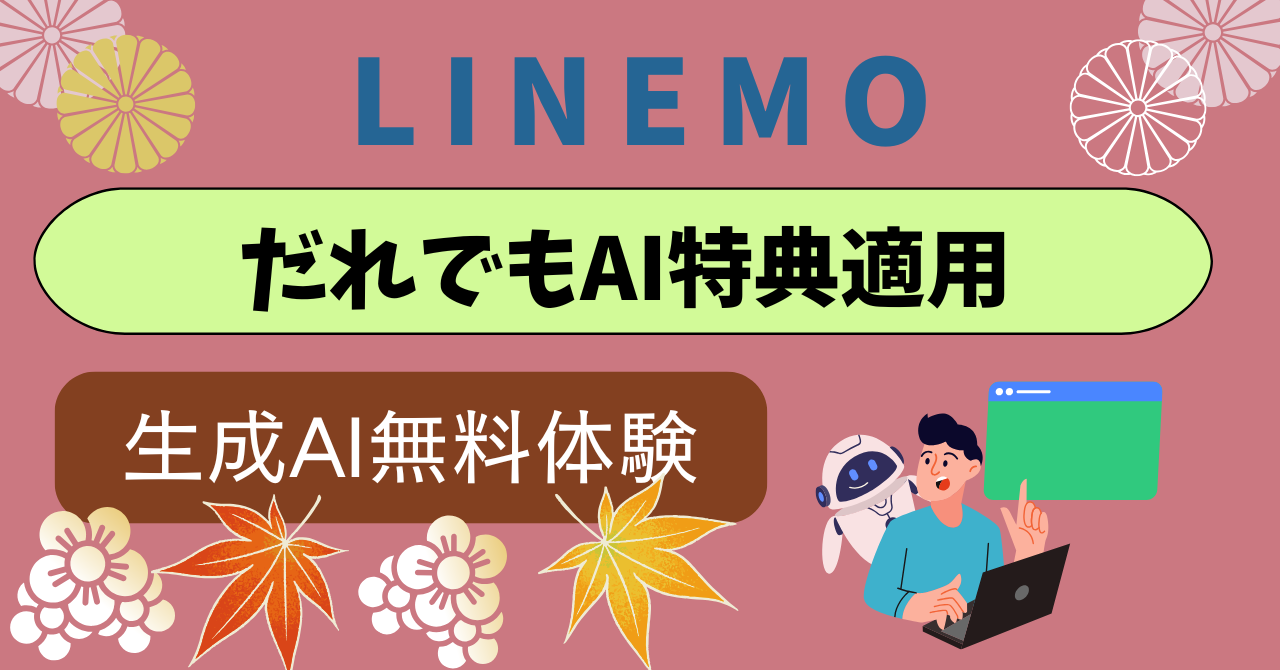 LINEMOだれでもAI特典つき利用方法と利用手順 更新日:2026年4月26日 LINEMO LINEMOだれでもAI特典つき利用方法 LINEMOユーザーは、ソフトバンクが2026年4月17日に提供を開始した生成AI体験サービス「だれでもAI」を、特典付きで利用できます。 AIサービスを簡単な操作で体験できる「 […] 続きを読む